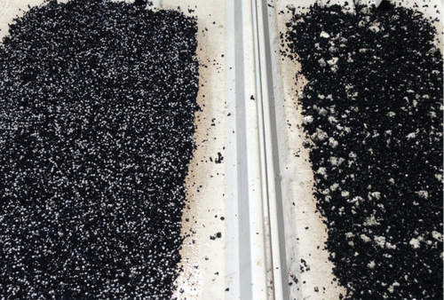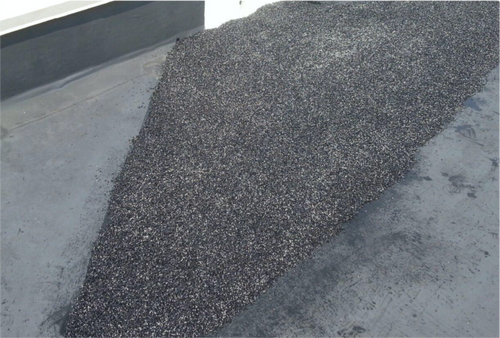 GreenSlope fills low spots to create positive slope over a variety of roof substrates. It is made up of highly durable recycled rubber granules mixed with styrofoam beads. It is convenient to use; mixing readily with a polyurethane binder to create a time-tested trowel grade material that is easily shaped and worked. The cured material is similar to that of a running track or playground surface and can withstand tough climates as well as heavy foot traffic.