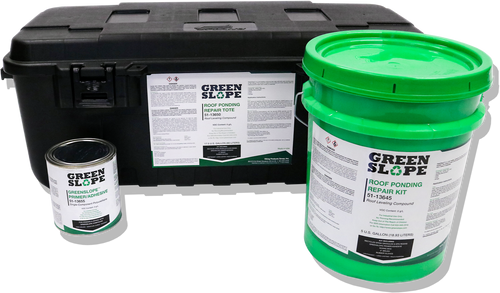 GreenSlope is a unique roofing material made from recycled products designed to reduce the depth of water ponding areas on flat rooftops. Its unique properties allow it to be shaped and built up to redirect water towards drainage areas.